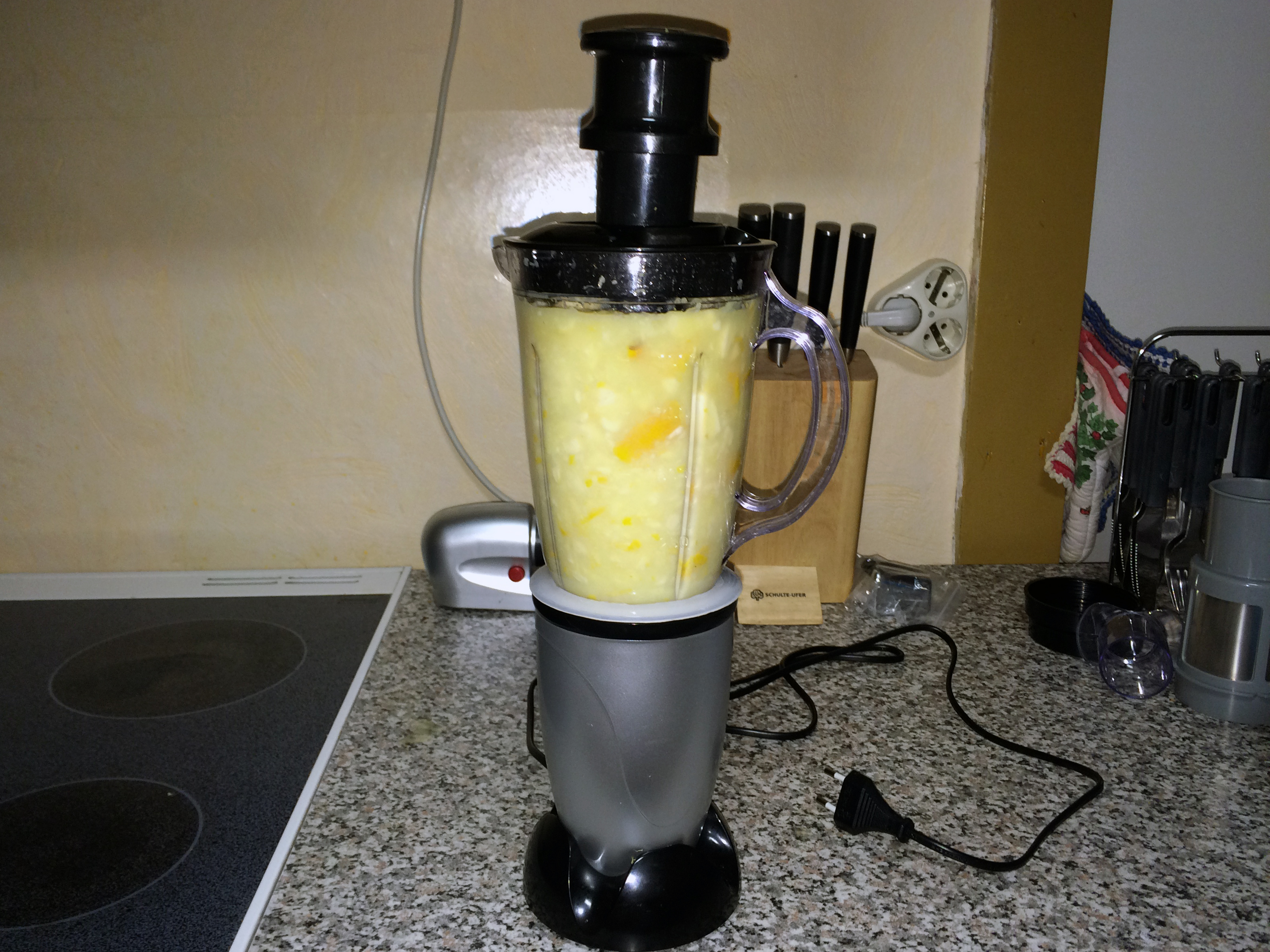 Zitronen und Knoblauch im Mixer