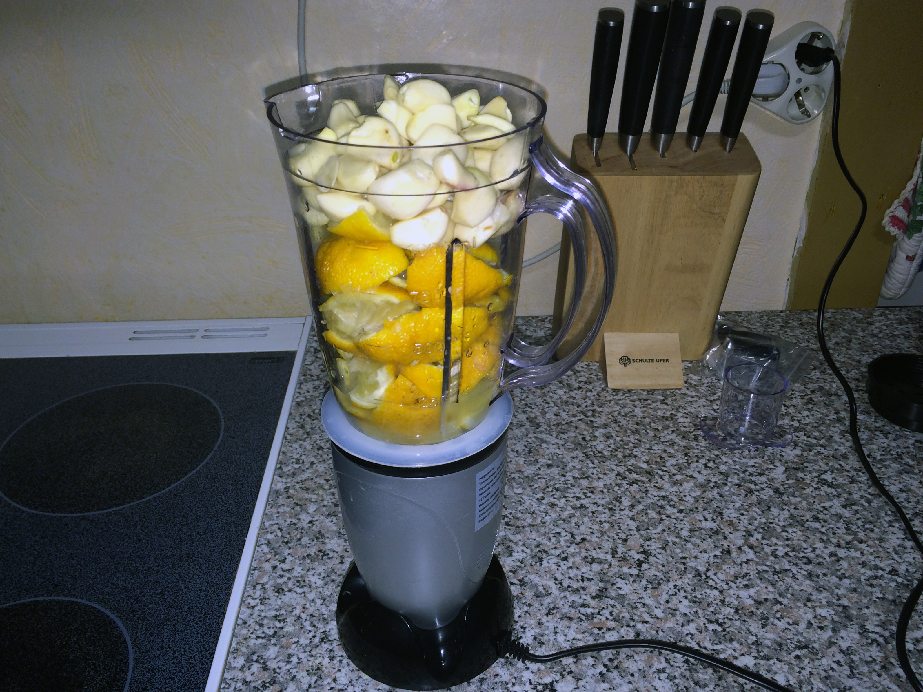 Zitronen und Knoblauch im Mixer
