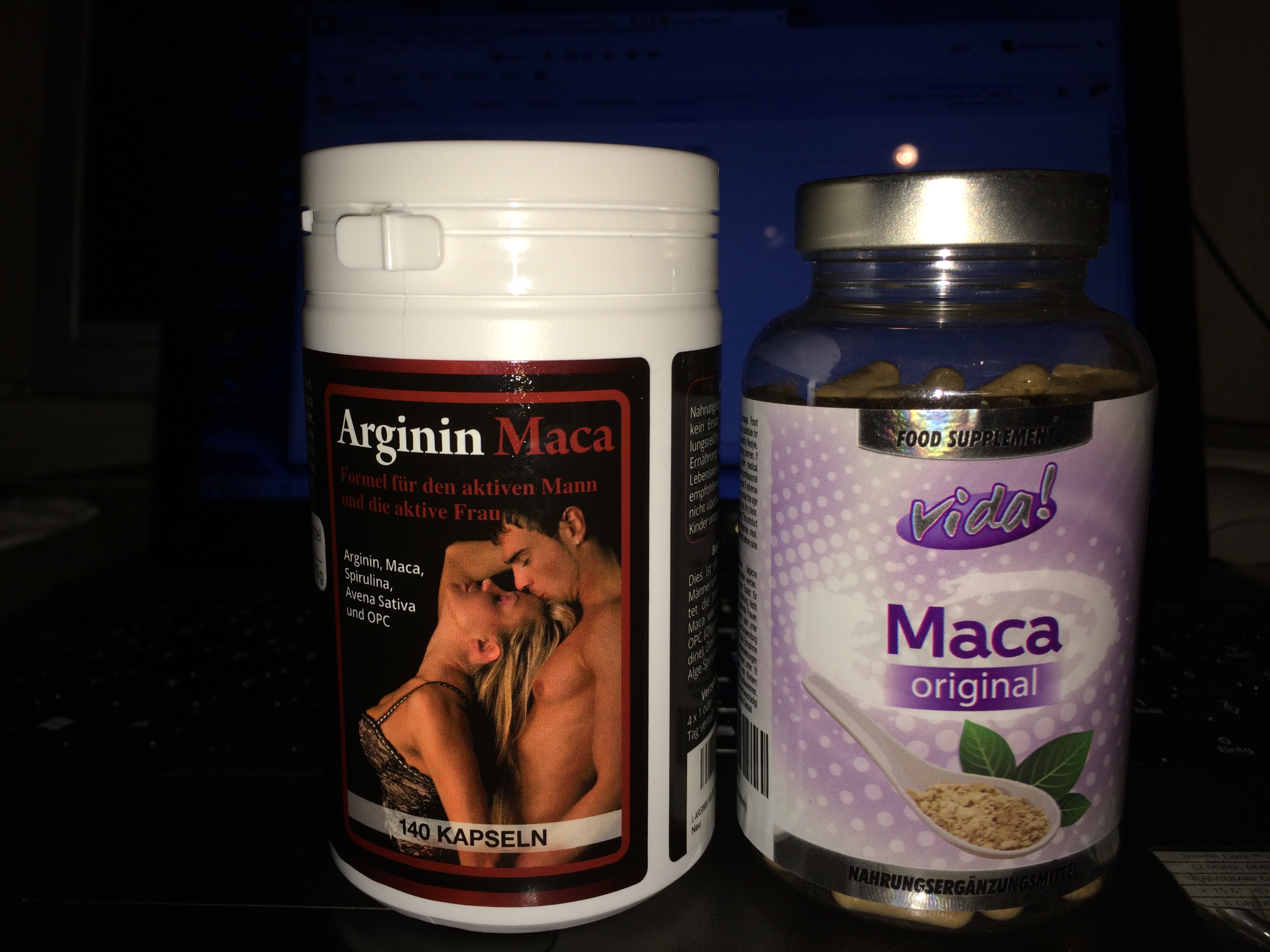 In der langen Nacht von Montag auf Dienstag beschließe ich nur noch eine Kapsel "Arginin Maca" zu nehmen, und zwar abends vor dem Schlafengehen.