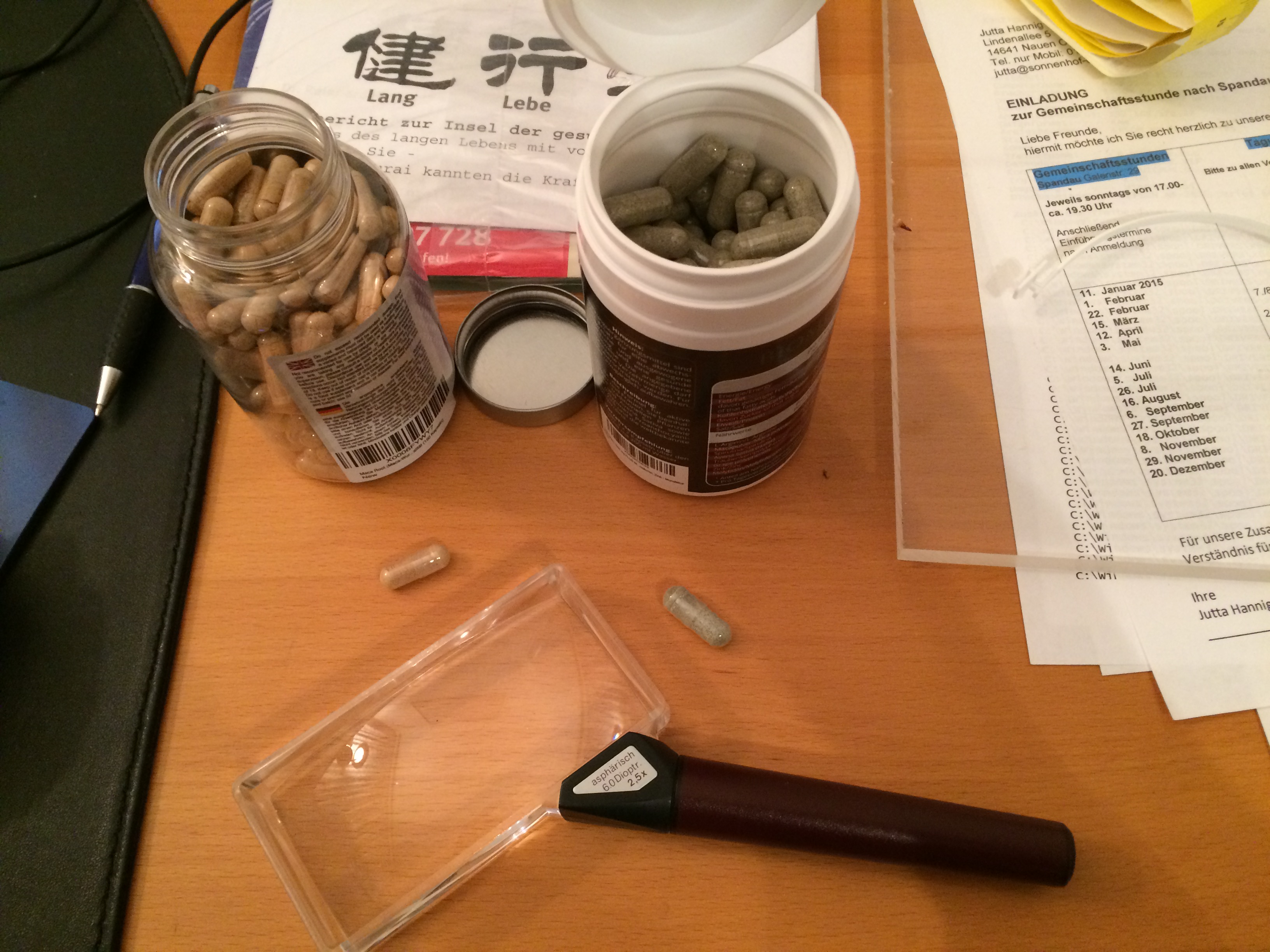 Die Dosis heute umfasst drei Kapseln "Maca vida!" je 2000 mg plus eine Kapsel "Arginin Maca" mit 350 mg.