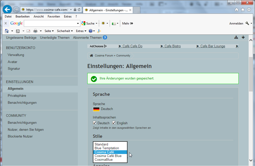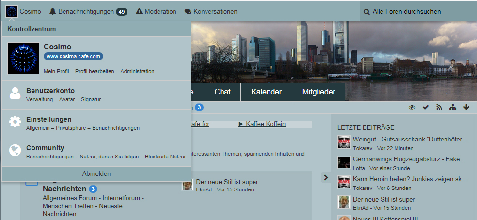 Man kann sie oben links im Profil auswÀhlen, oder testweise unten rechts im Forum neben der Uhrzeit-Anzeige.