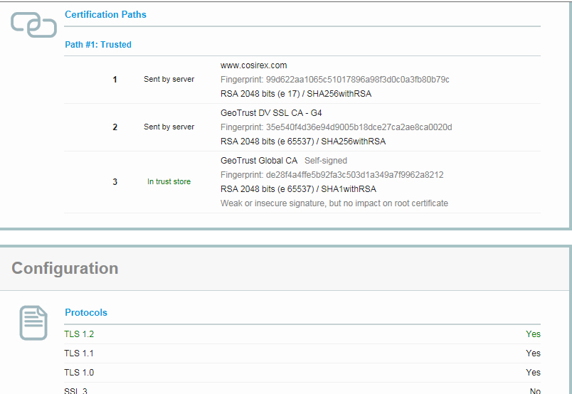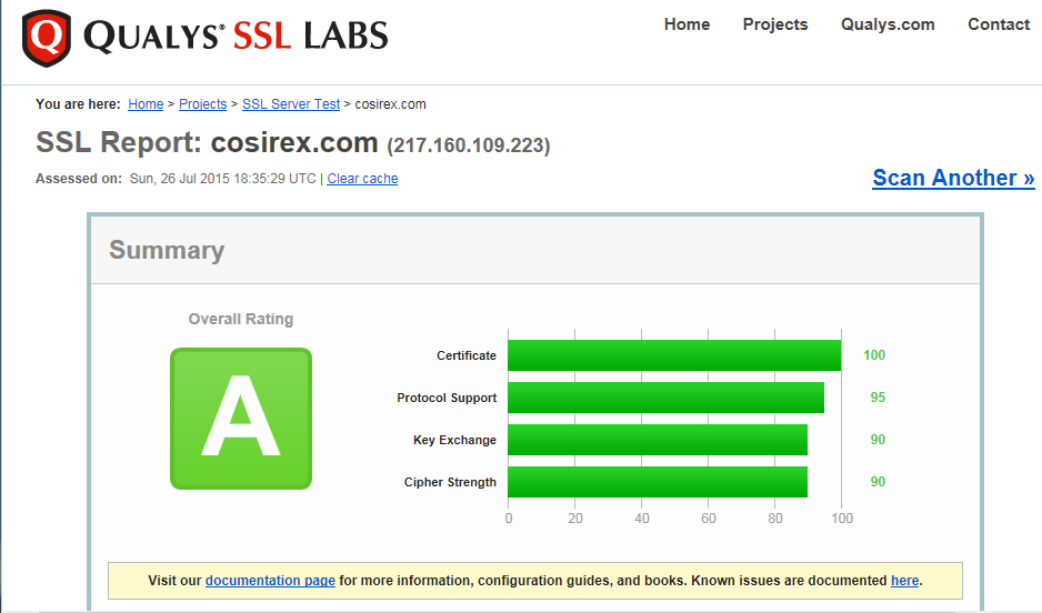 Wir haben lauft dem folgenden Test eine 1A Verschlüsselung. Es dürften auf keinem Gerät mehr Warnungen