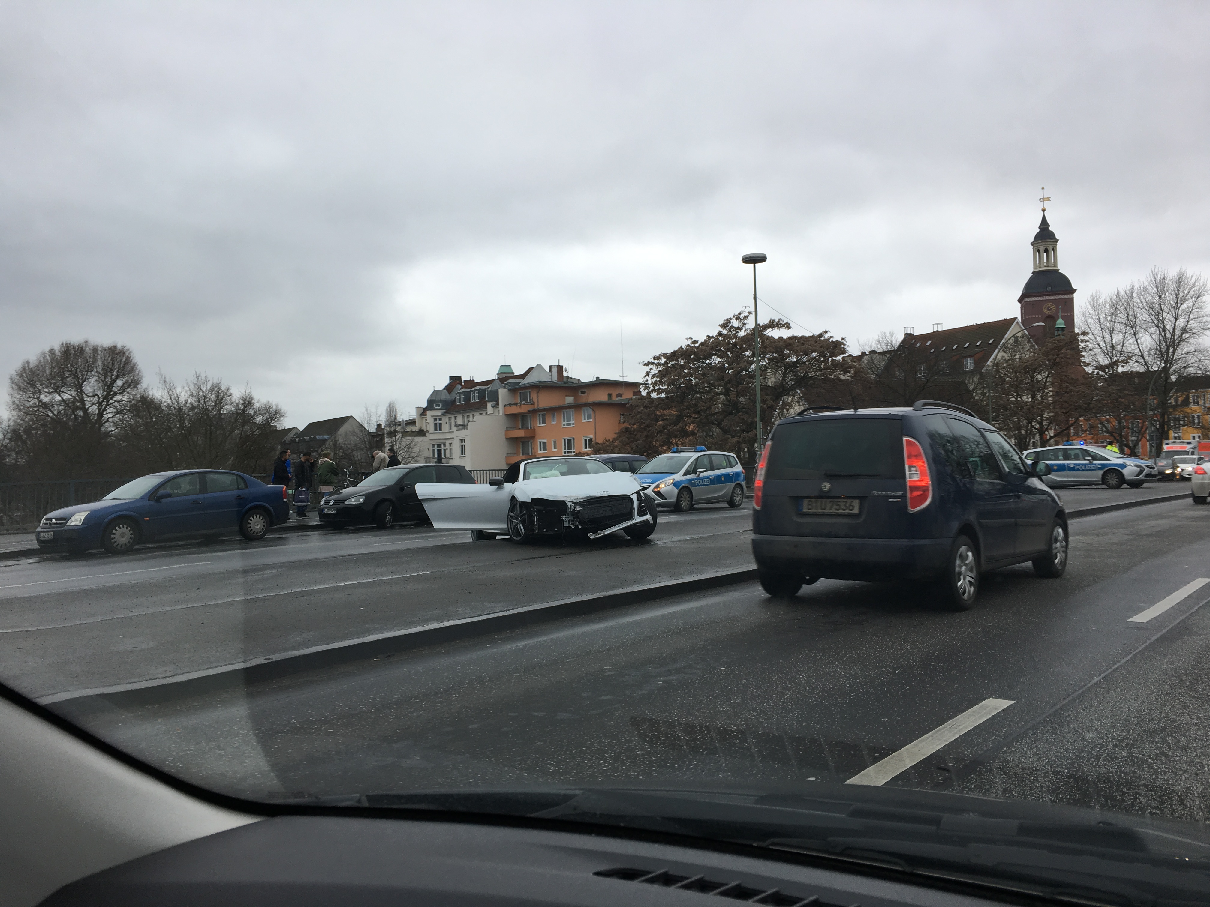 Schreckliches UnglĂŒck am Samstagmittag: Auf leicht regennaßer Fahrbahn krachen am Juliusturm in Berlin-Spandau gegen 13.41 Uhr mehrere Fahrzeuge ineinander. Mindestens zwei Menschen ĂŒberleben schwer verletzt. ZunĂ€chst herrscht solch ein Durcheinander, dass die RettungskrĂ€fte keinen Überblick haben.