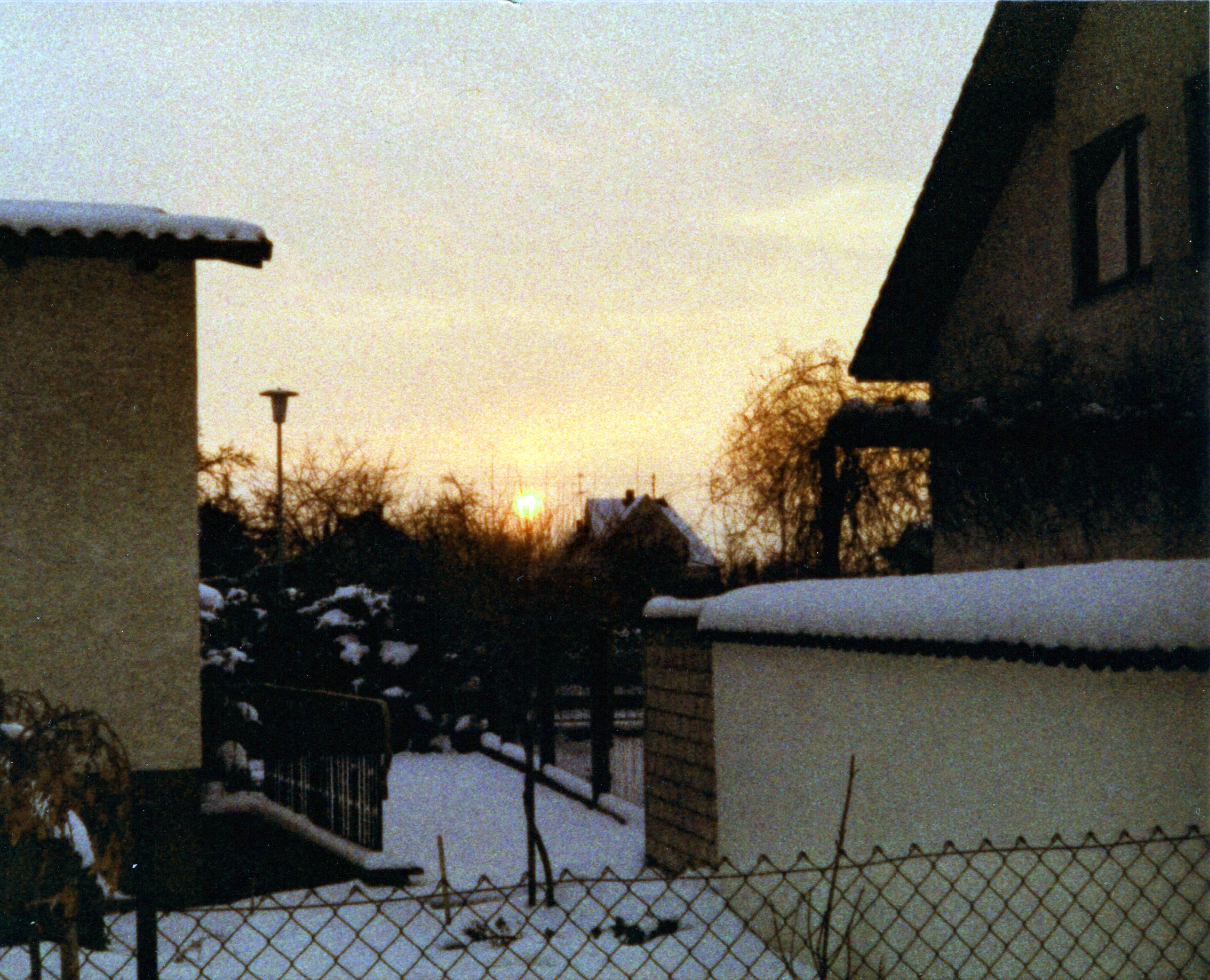 Aufgenommen mit Pocketkamera im Hof meines Elternhauses in Nauheim. Die Sonne geht ungefähr über Trebur unter.