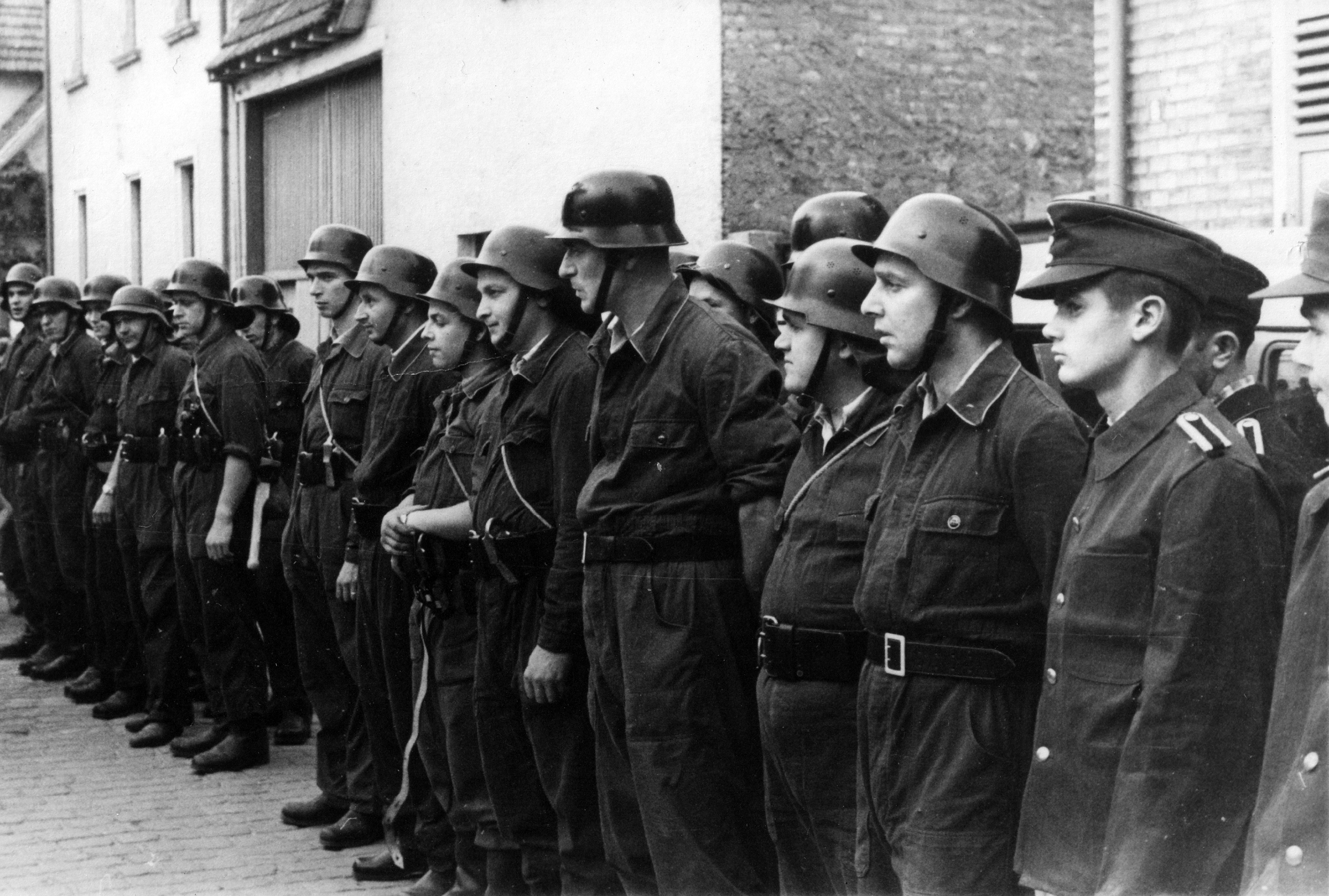 Die Freiwillige Feuerwehr Königstädten zum 25-jährigen Jubiläum im Jahr 1955.