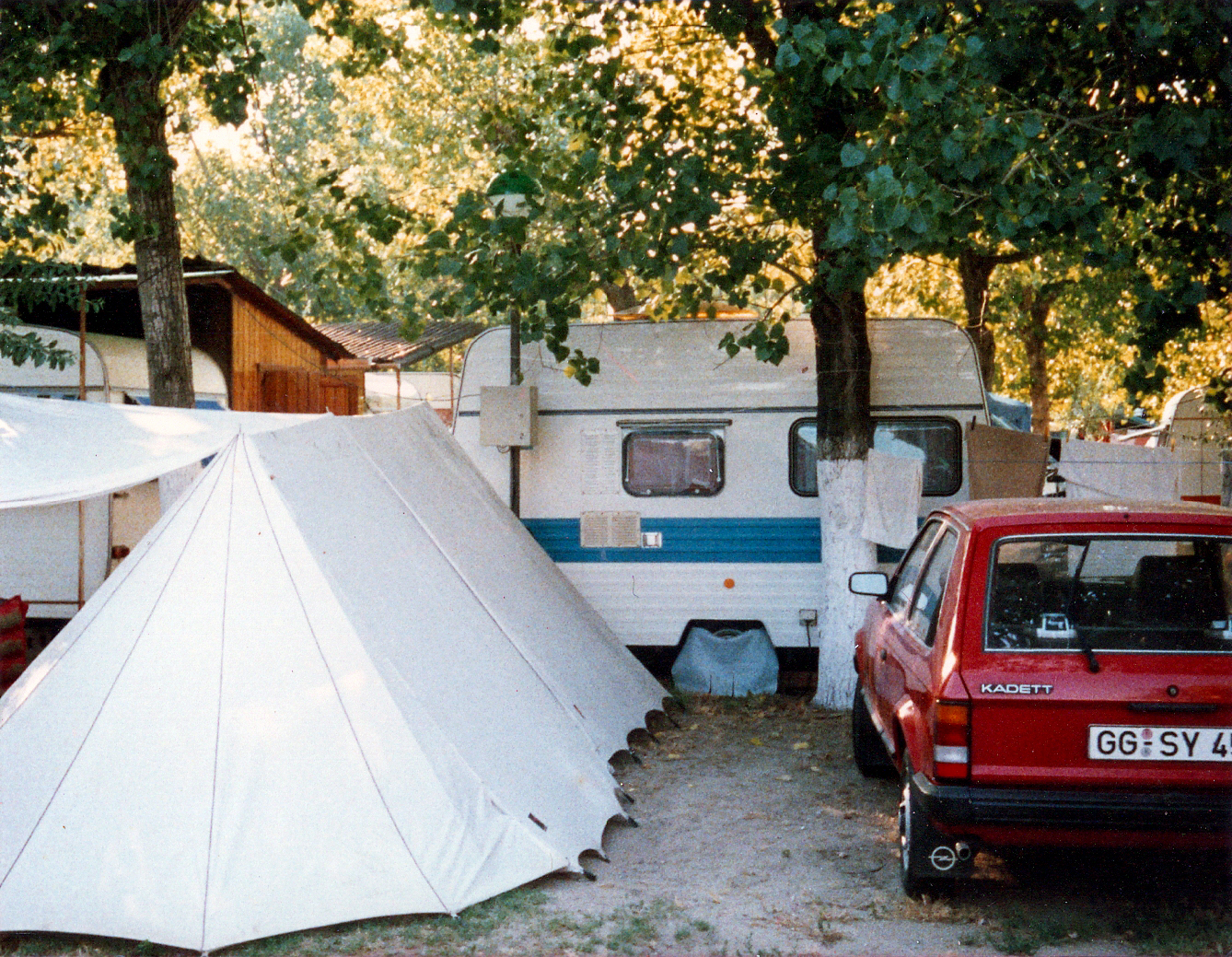 Der erste und einzigste Camping-Urlaub mit Zelt und meinem ersten Auto einem roten Opel D-Kadett. Das legendäre Party-Auto von 1986 bis 1996.