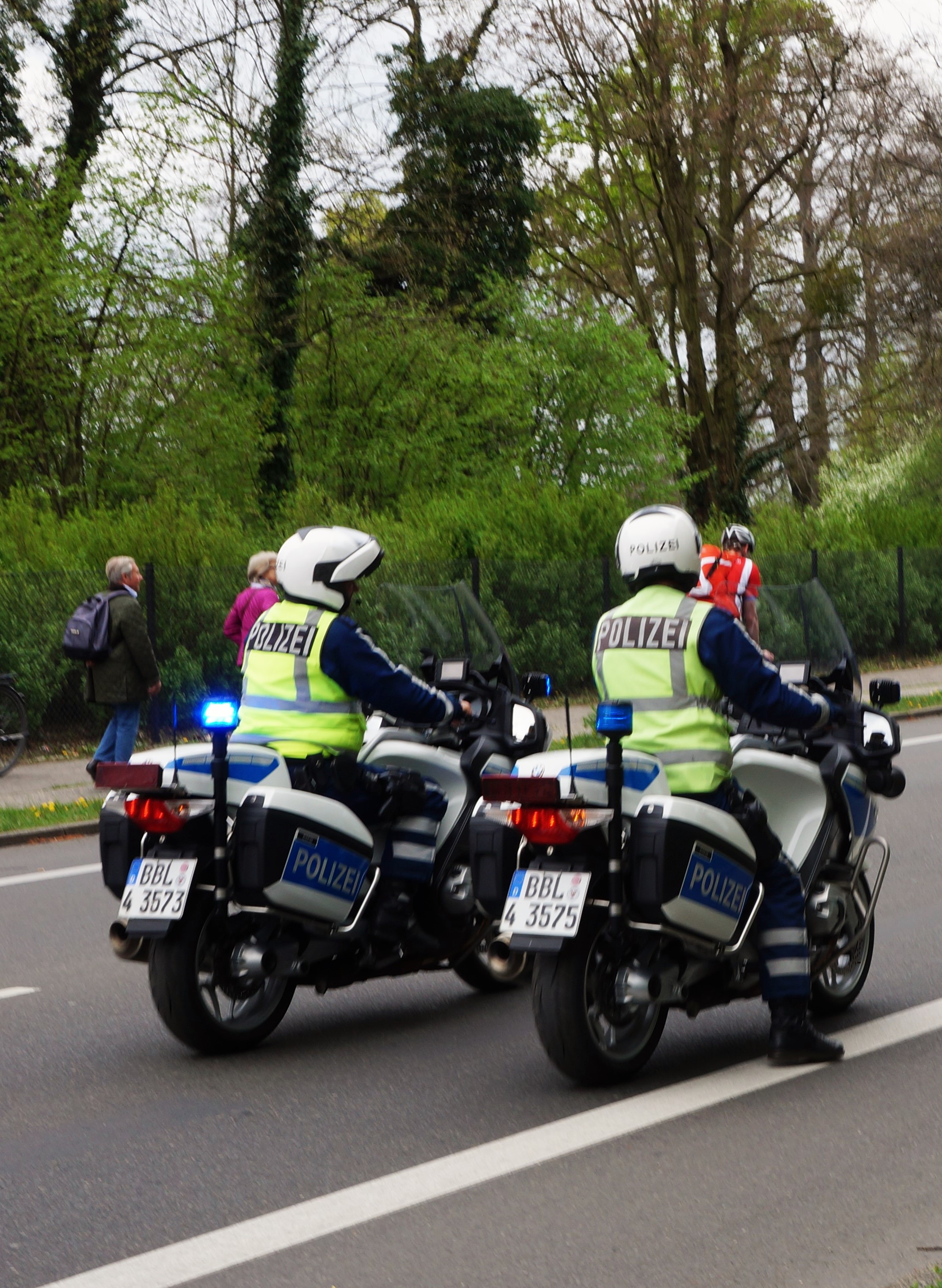 Polizei auf Motorrad unterwegs auf der Glienicker Brücke