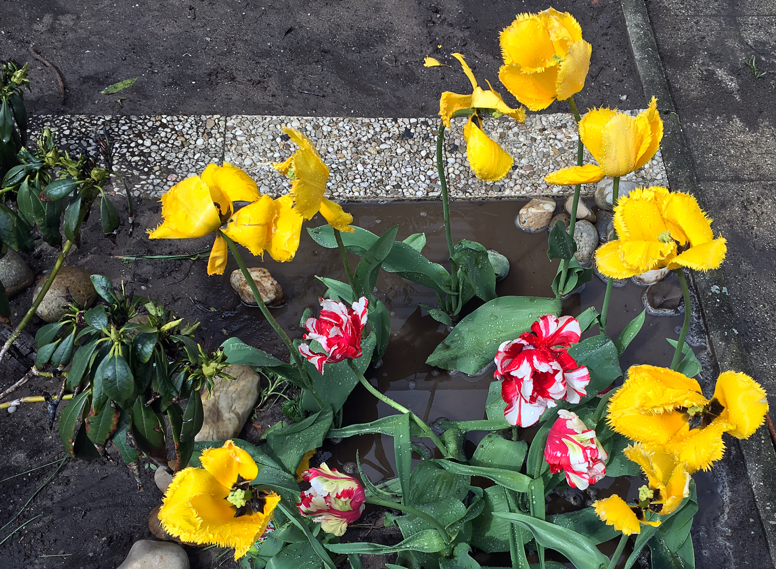 Gelbe und rot-weisse Blumenpracht