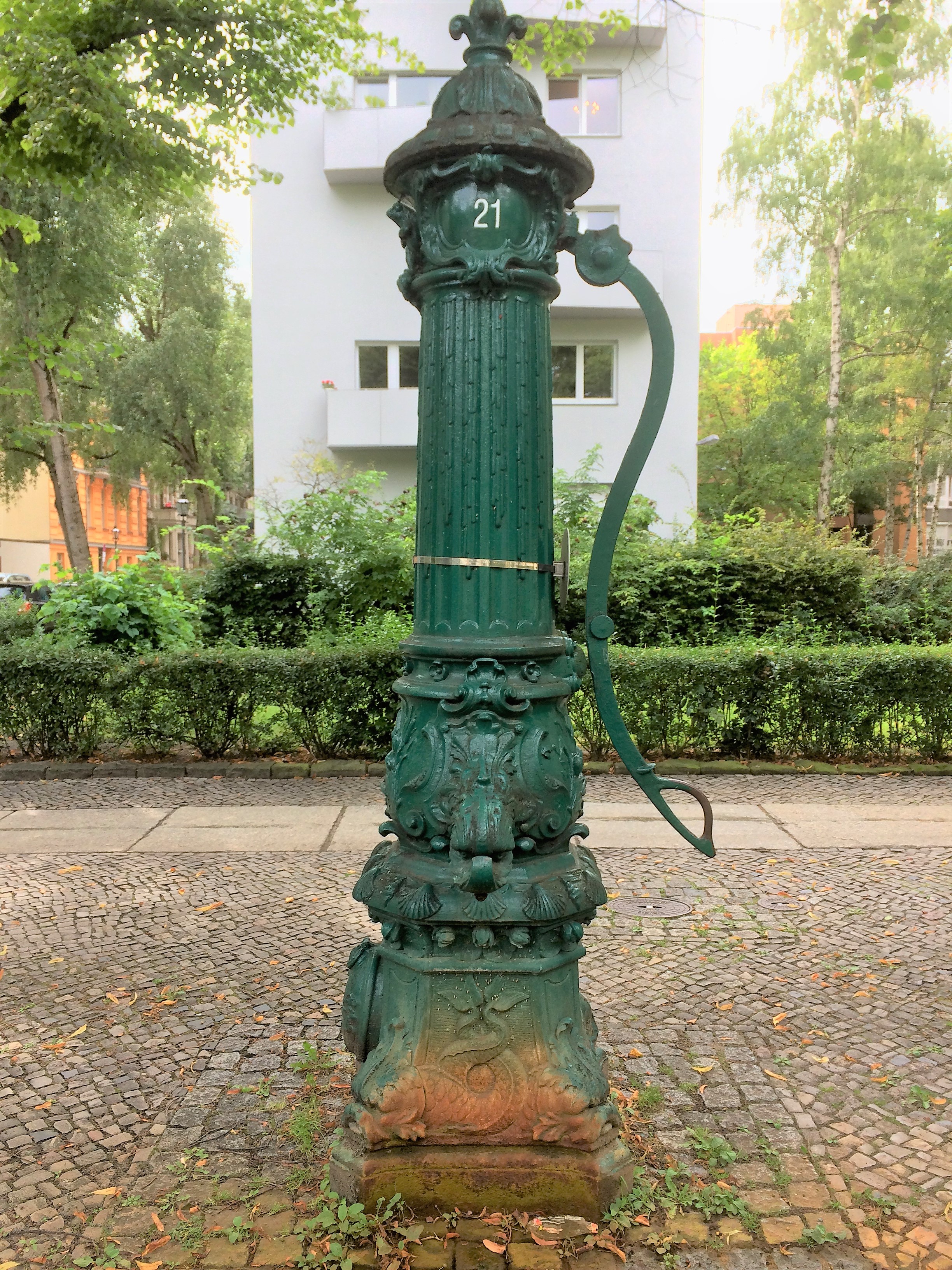 Sie gehören längst zu den inoffiziellen Wahrzeichen Berlins – die vielen grünen Wasser-pumpen, die unser Stadtbild prägen. 2100 sind es an der Zahl, von denen die meisten noch funktionsfähig sind und nicht aus bloßer Nostalgie unsere Straßenränder säumen. Im Katastrophenfall dienen sie der netzunabhängigen Notfallversorgung der Bevölkerung mit Trink und Löschwasser. Ursprünglich gedacht waren sie als Tränke für Kutschpferde. ![]()