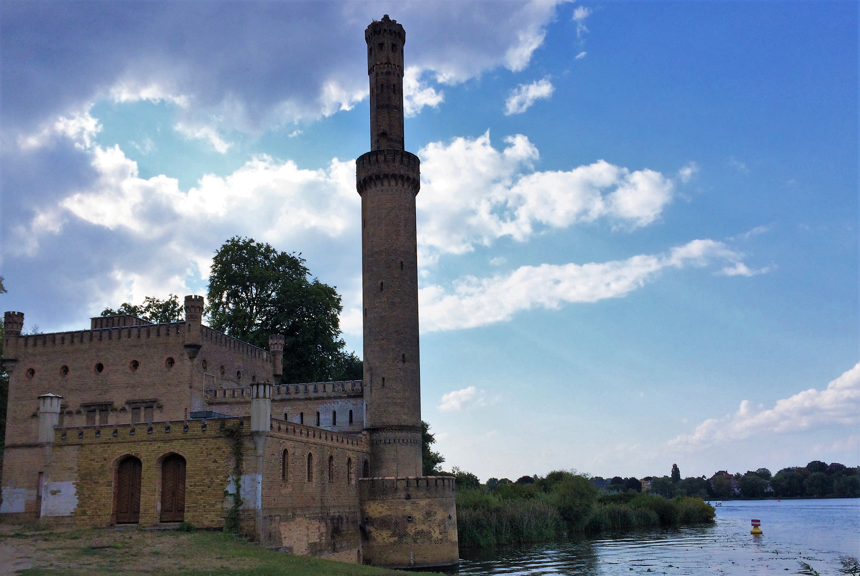 Maschinen Haus. Der Bau sieht wie eine mittelalterliche Burg, war aber damals die dampfmaschienen getriebene Wasserpumpe für die Wasserversorgung von Schloß und Park.
