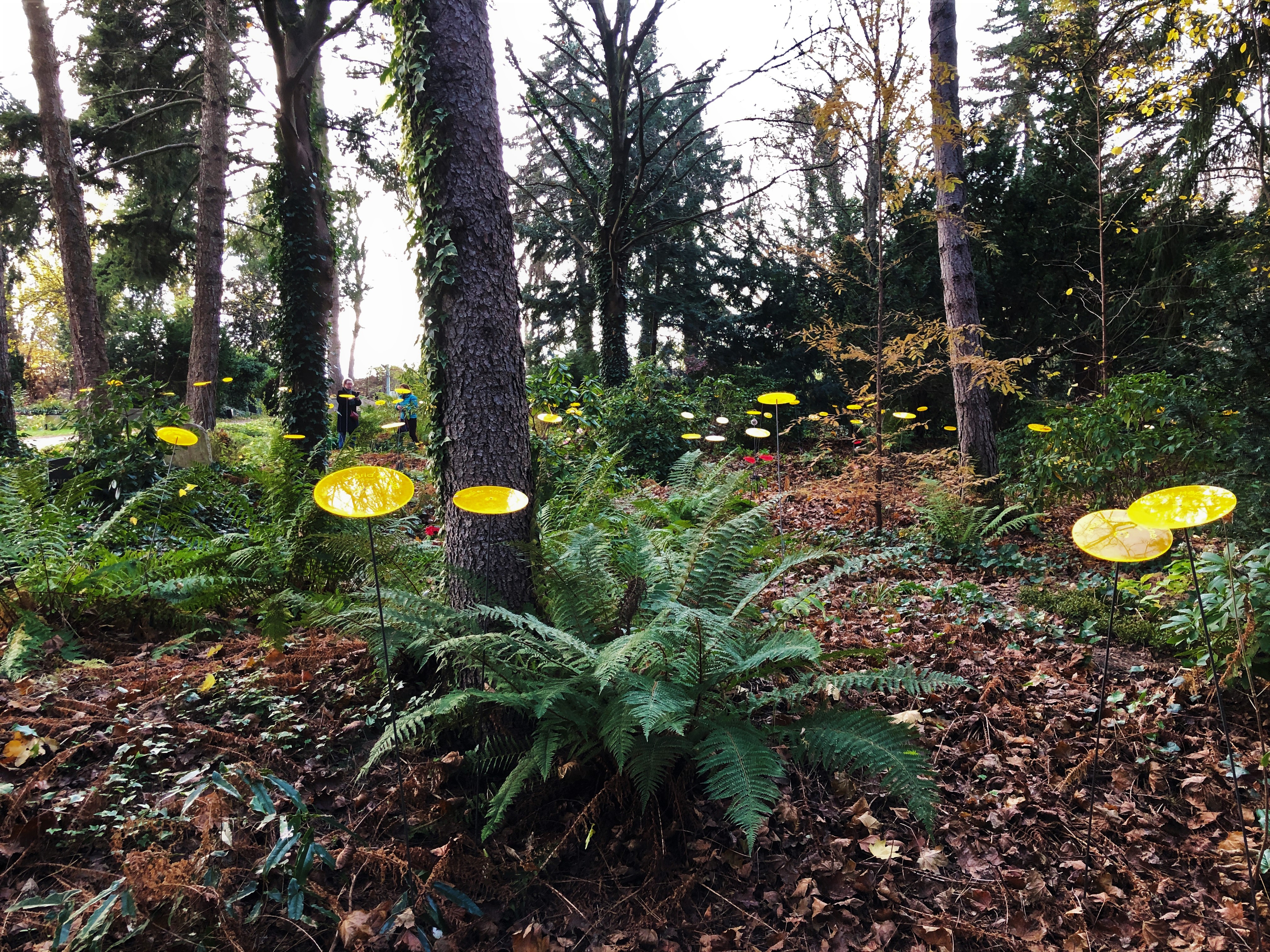 Schön zu sehen die gelben, runden Namenstafeln, sind sehr schöne optische Hingucker, die Gräber markieren.
