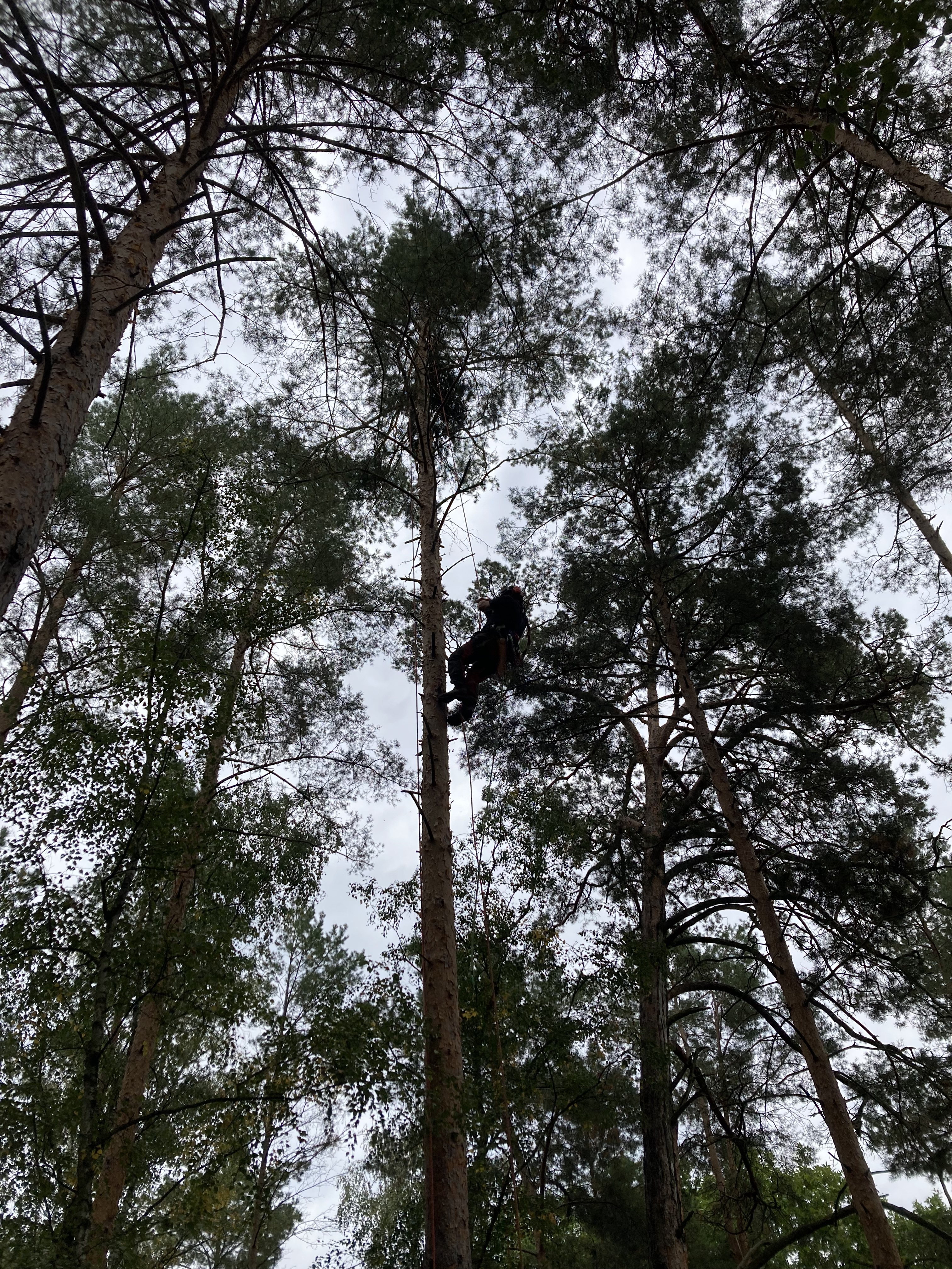 Die Drohne ist auf einen 30 Meter hohen Kiefer Baum gelandet und ist fast 7 Tage lang dort geblieben. Viele Versuche sie runter zu holen und vor dem Regen und Gewitter zu schützen blieben ohne Erfolg.