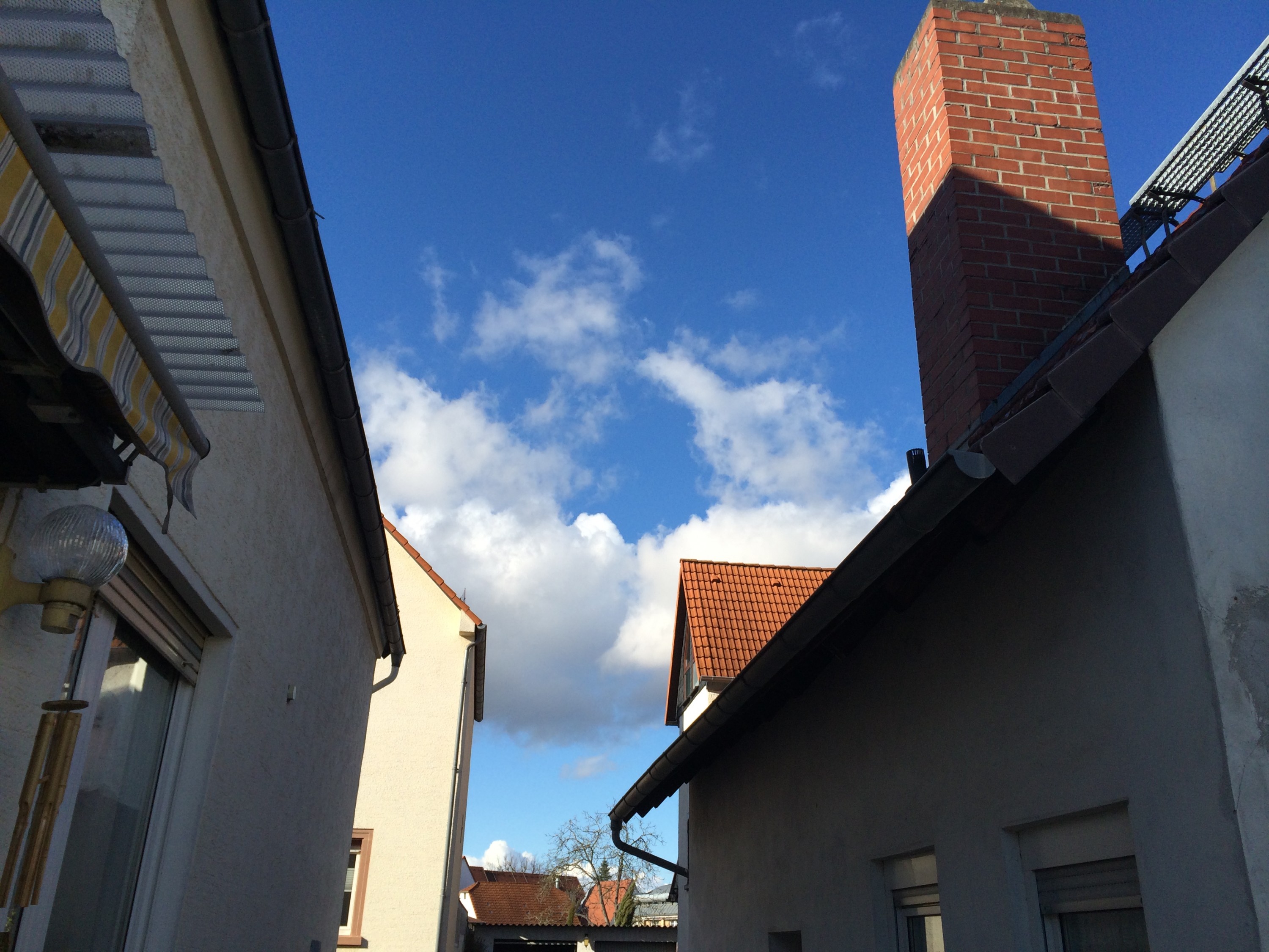 Blauer Himmel über den Häuserschluchten von Rüsselsheim-Königstädten.Blue sky over the houses of Rüsselsheim-Königstädten.